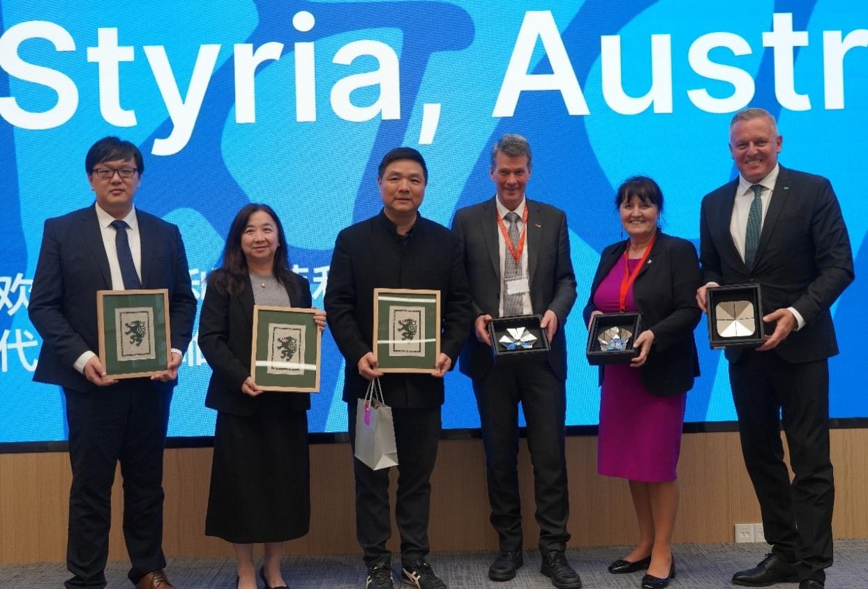 该代表团是施蒂利亚州近年来规模最大、层级最高、覆盖面最广的访华代表团,涵盖州政府核心领导、议会高层、经济界领袖、高校校长及媒体代表。代表团成员还包括施蒂利亚州副州长科姆(Manuela Khom)、州议会议长多伊奇曼(Gerald Deutschmann)、州经济部长埃伦赫费尔(Wilibald Ehrenhöfer)、州交通部长霍尔泽(Claudia Holzer)等政府要员,以及格拉茨工业大学校长毕硕夫(Horst Bischof)。此外,来自施蒂利亚州商会、工业联合会、多个产业集群及主流媒体的核心代表也随团来访。奥地利驻华大使海沃福(Wolf Dietrich Heim)、驻上海总领事格梅伯森(Gerhard Alois Maynhardt)陪同访问。